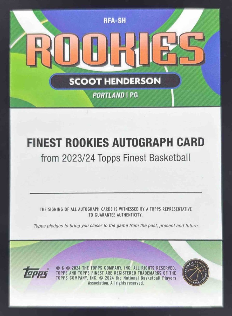 2023-24 Topps Finest Rookie Finest Black Refractor Scoot Henderson RC Auto /25