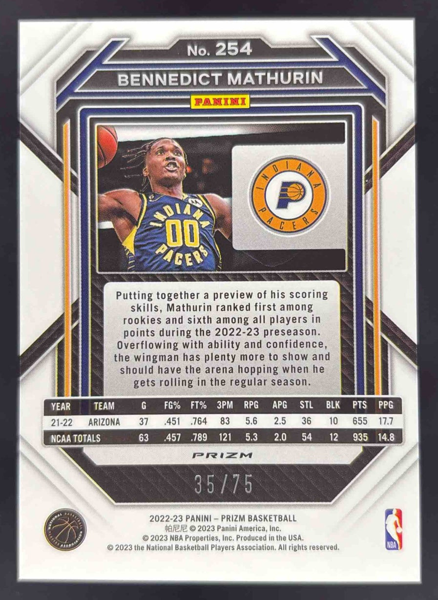 2022-23 Panini Prizm Prizms Fast Break Purple #254 Bennedict Mathurin RC /75