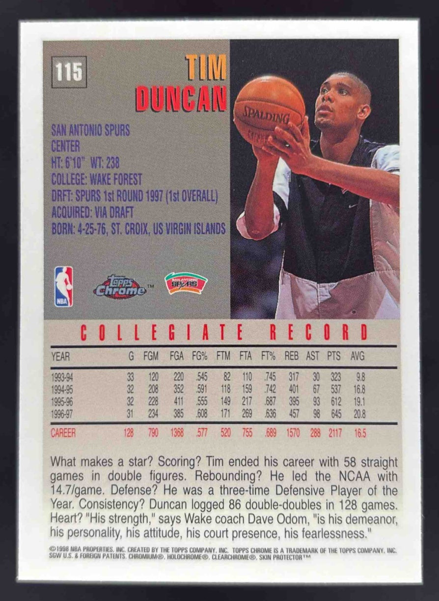 1997-98 Topps Chrome #115 Tim Duncan RC