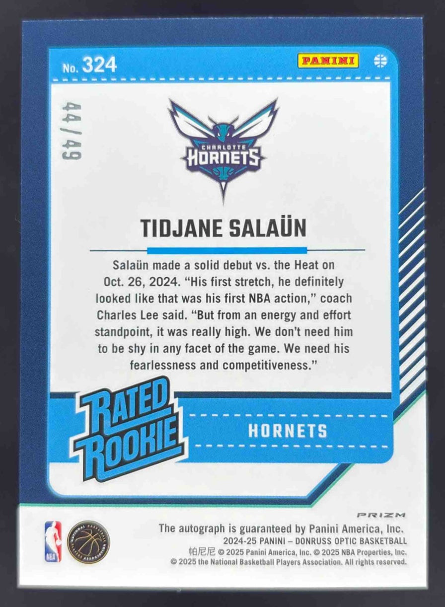2024-25 Panini Donruss Optic Rated Rookies Blue #324 Tidjane Salaun RC Auto /49