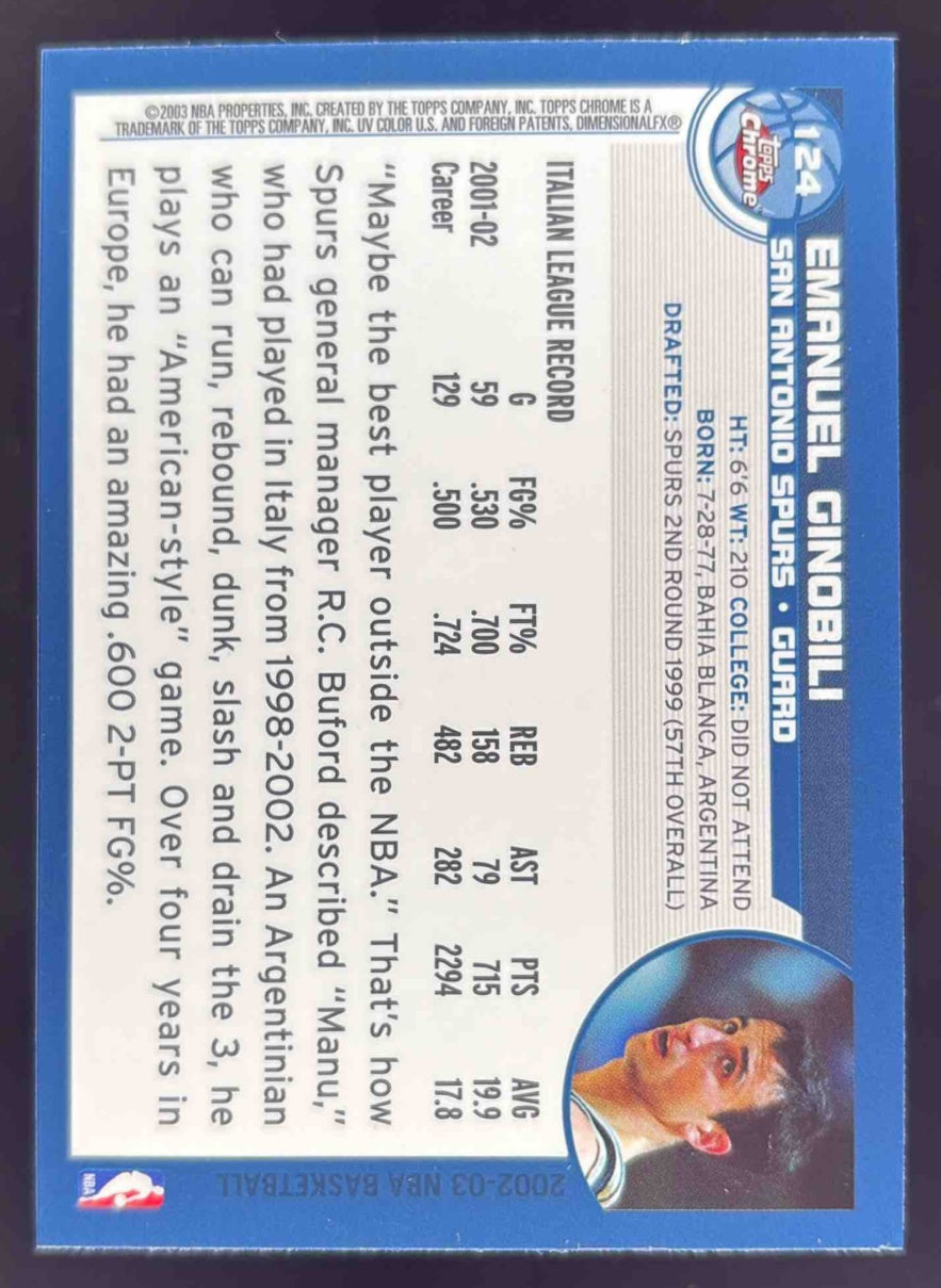 2002-03 Topps Chrome #124a Emanuel Ginobili RC