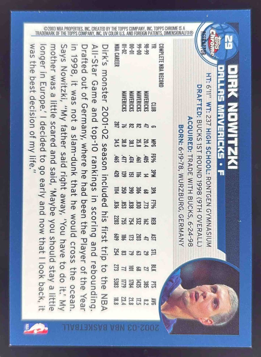 2002-03 Topps Chrome Refractors #29 Dirk Nowitzki