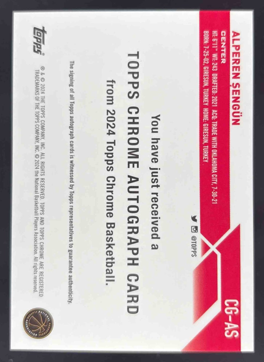 2023-24 Topps Chrome Orange Geometric Refractors #CG-AS Alperen Sengun Auto /25