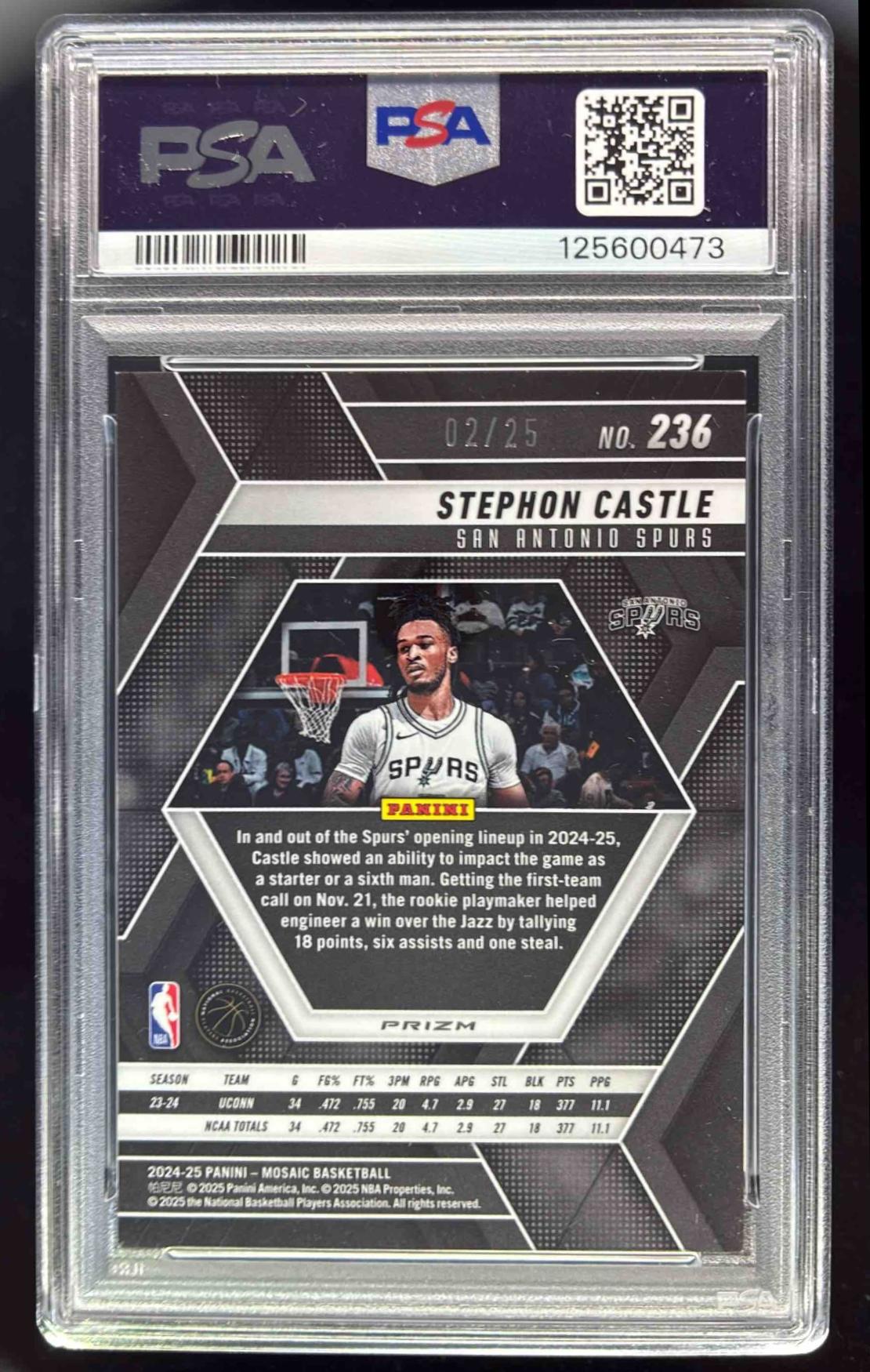 2024-25 Panini Mosaic White Mosaic #236 Stephon Castle RC /25 PSA 7