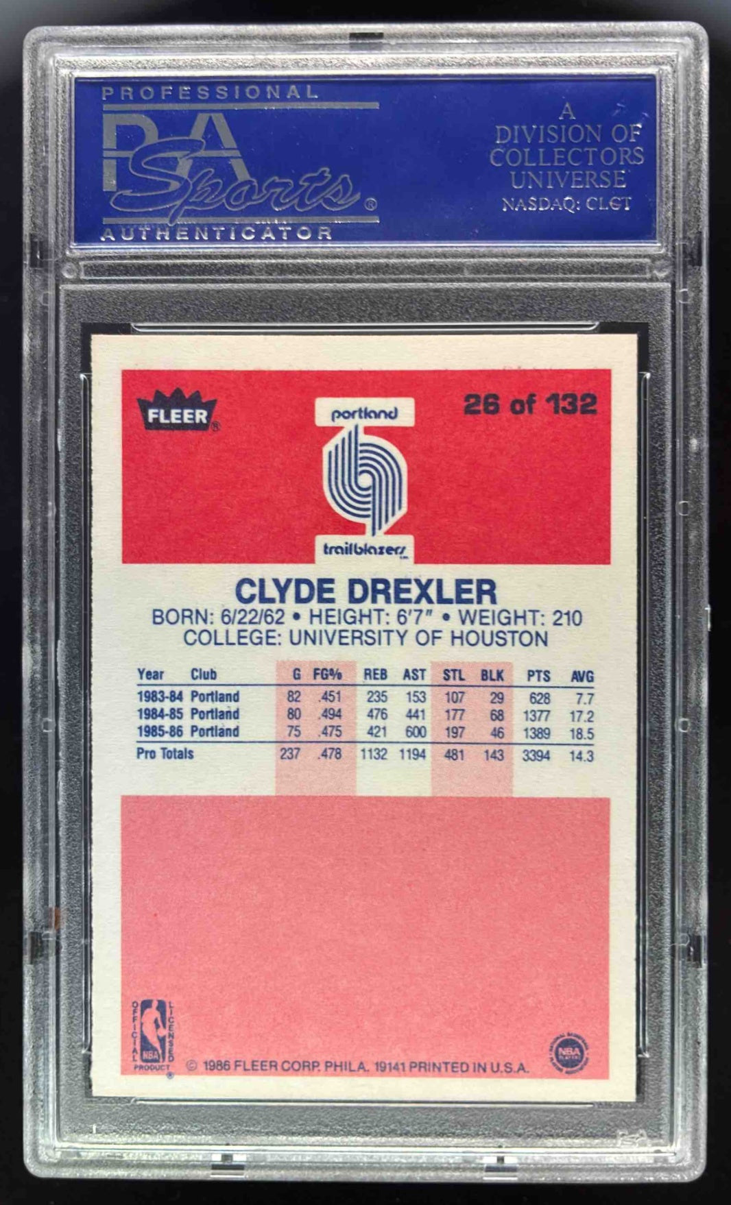 1986-87 Fleer #26 Clyde Drexler RC PSA 8
