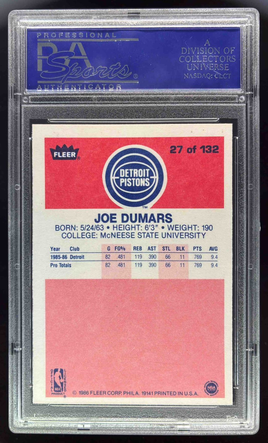 1986-87 Fleer #27 Joe Dumars RC PSA 8
