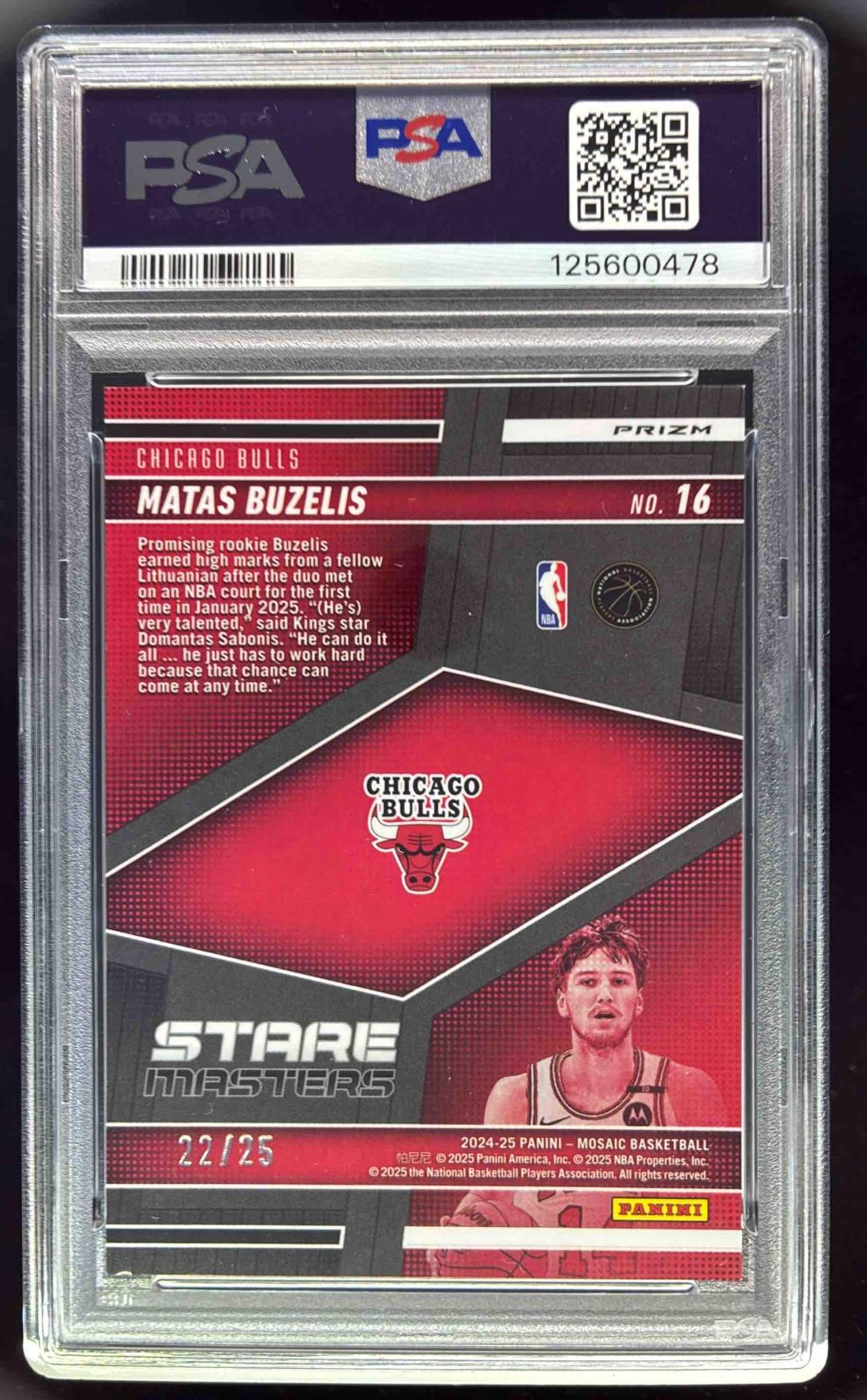 2024-25 Panini Mosaic Stare Master White Mosaic #16 Matas Buzelis RC /25 PSA 8