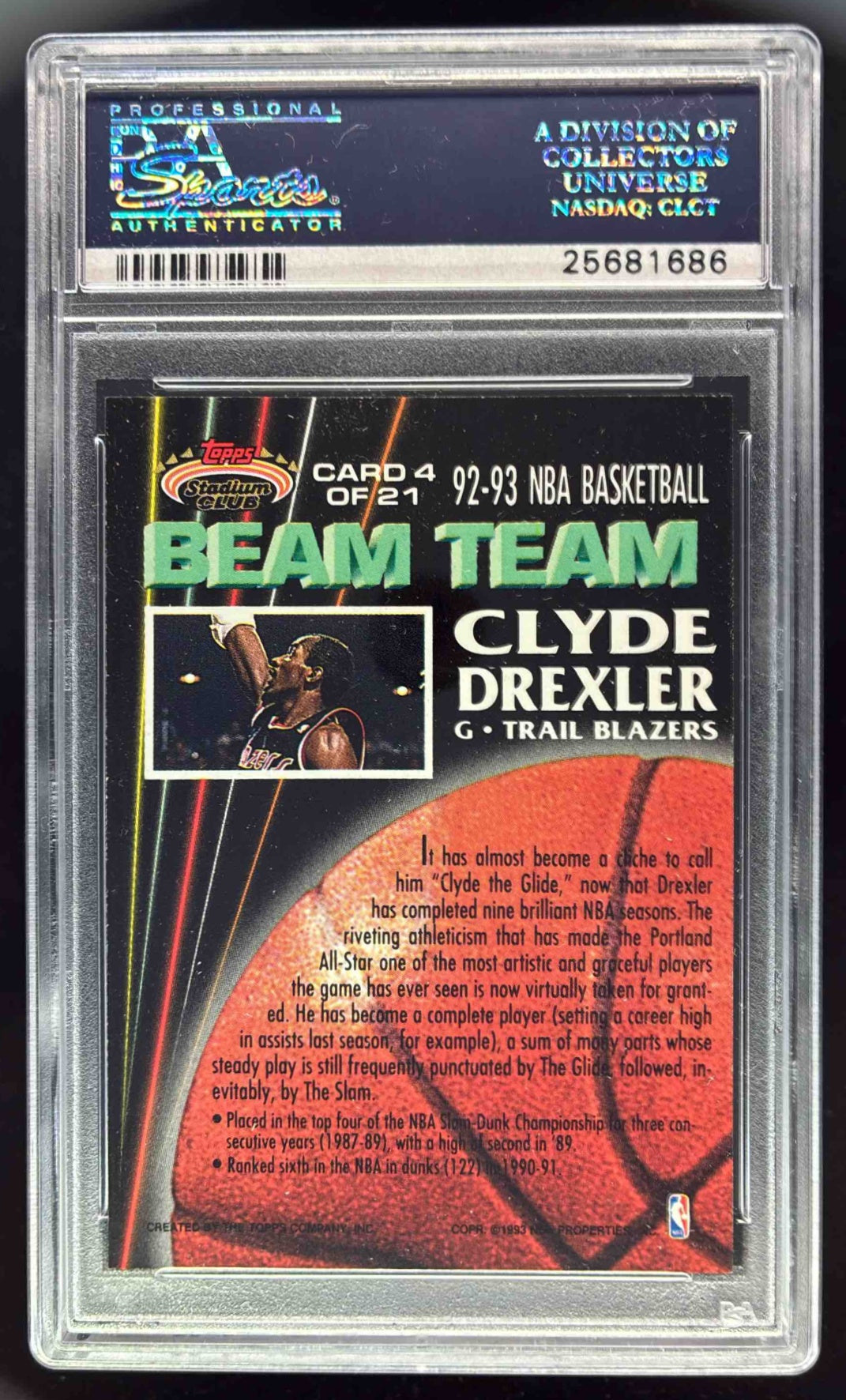 1992-93 Topps 93 Stadium Club Beam Team Members Only #4 Clyde Drexler PSA 8.5