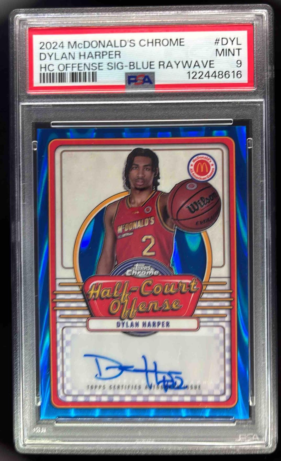 2024 Topps Chrome McDonald's Half-Court Blue RayWave Dylan Harper Auto PSA 9