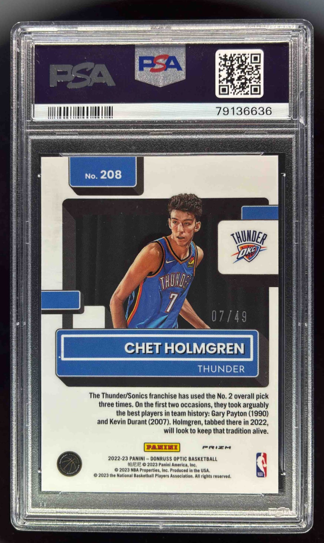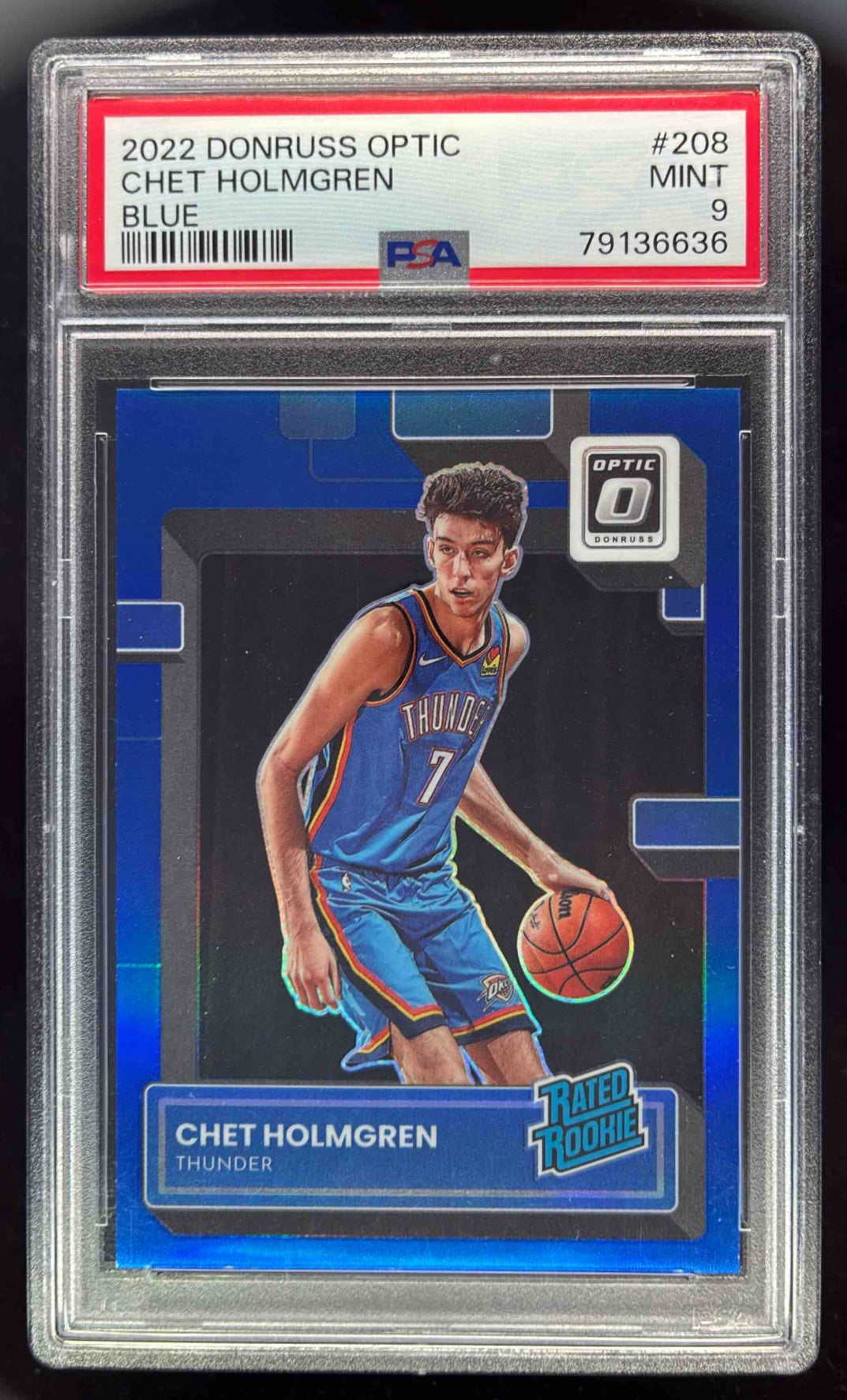2022-23 Panini Donruss Optic Blue #208 Chet Holmgren RC Rated Rookie /49 PSA 9
