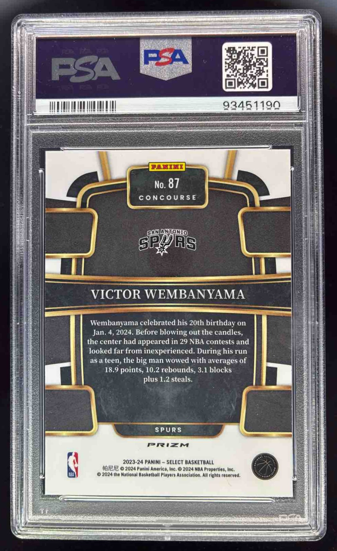 2023-24 Panini Select Tectonic Prizms #87 Victor Wembanyama RC Concourse PSA 10