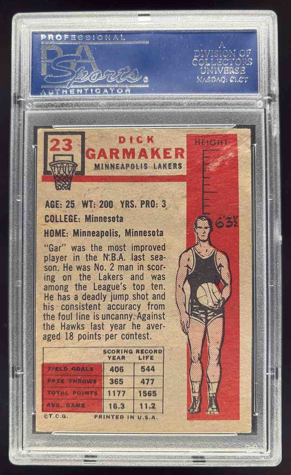 1957-58 Topps #23 Dick Garmaker RC PSA 2