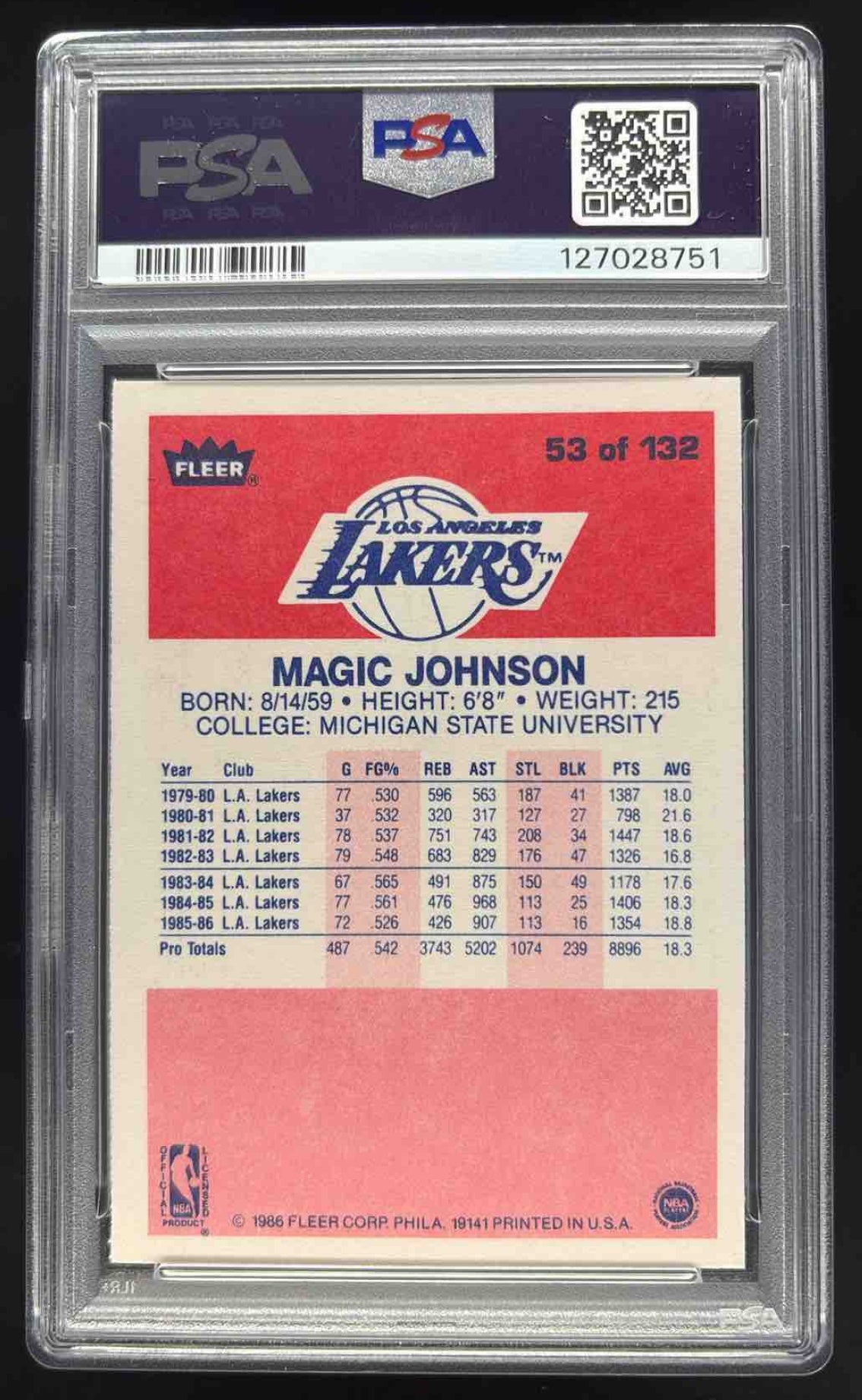 1986-87 Fleer #53 Magic Johnson PSA 8