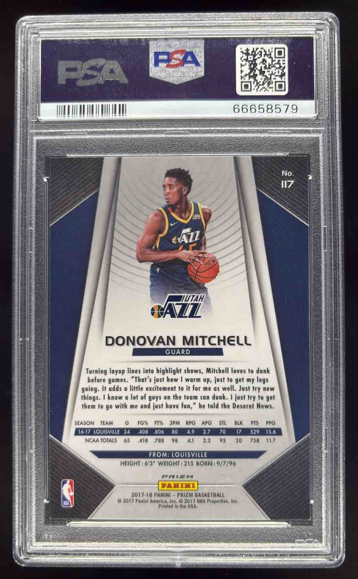 2017-18 Panini Prizm Prizms Ruby Wave #117 Donovan Mitchell RC PSA 9