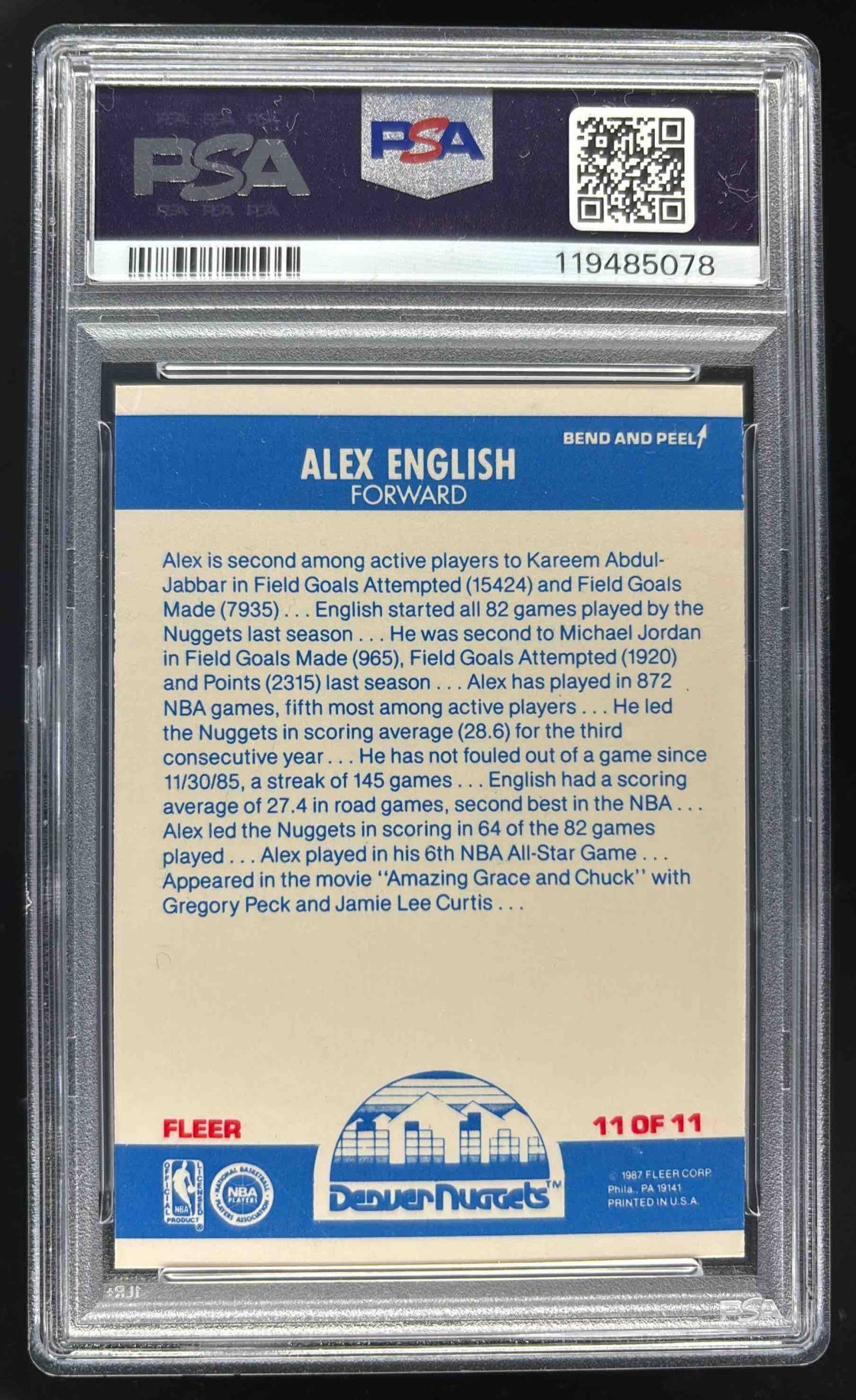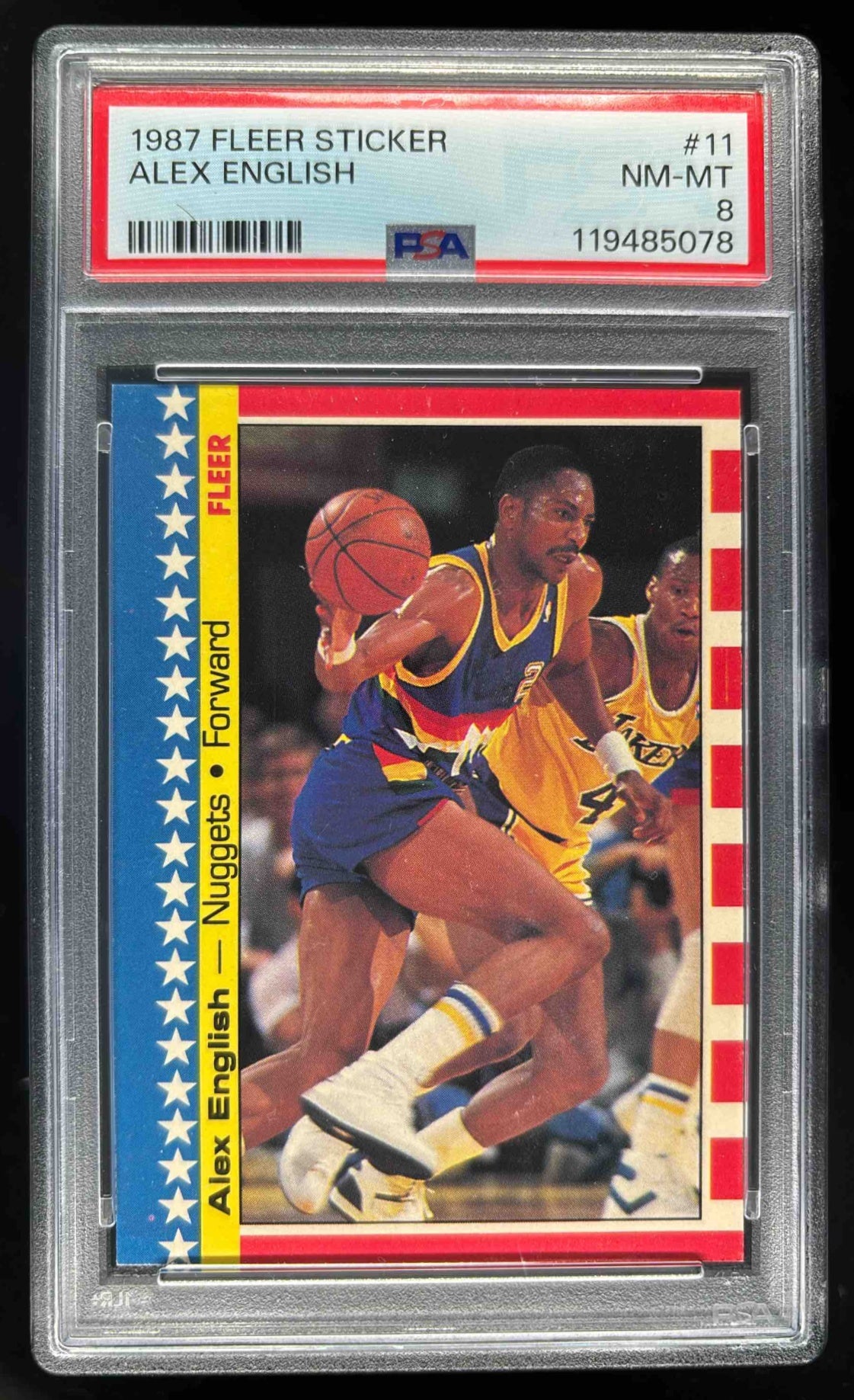 1987-88 Fleer Stickers #11 Alex English PSA 8