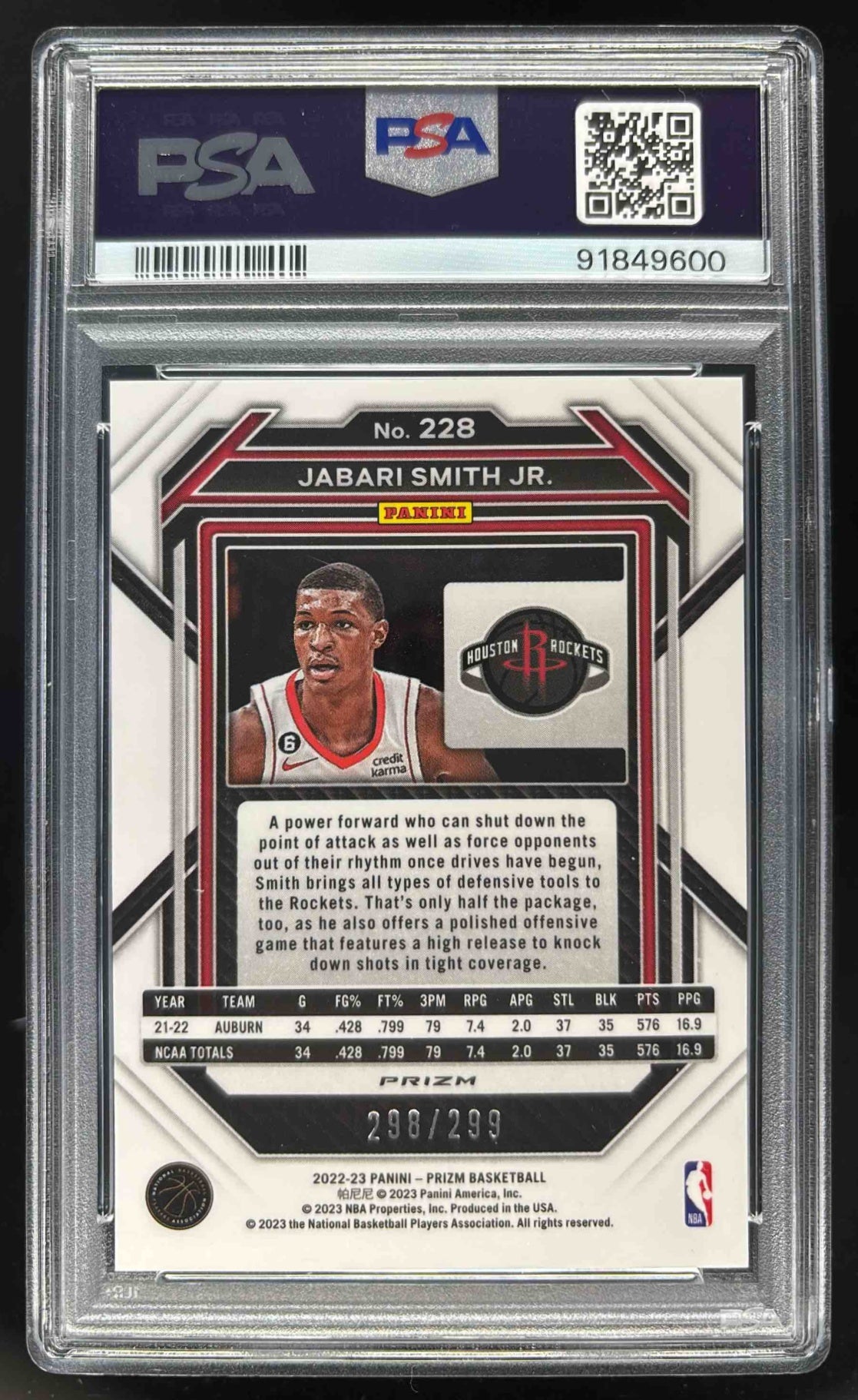 2022-23 Panini Prizm Prizms Red #228 Jabari Smith Jr. RC /299 PSA 9
