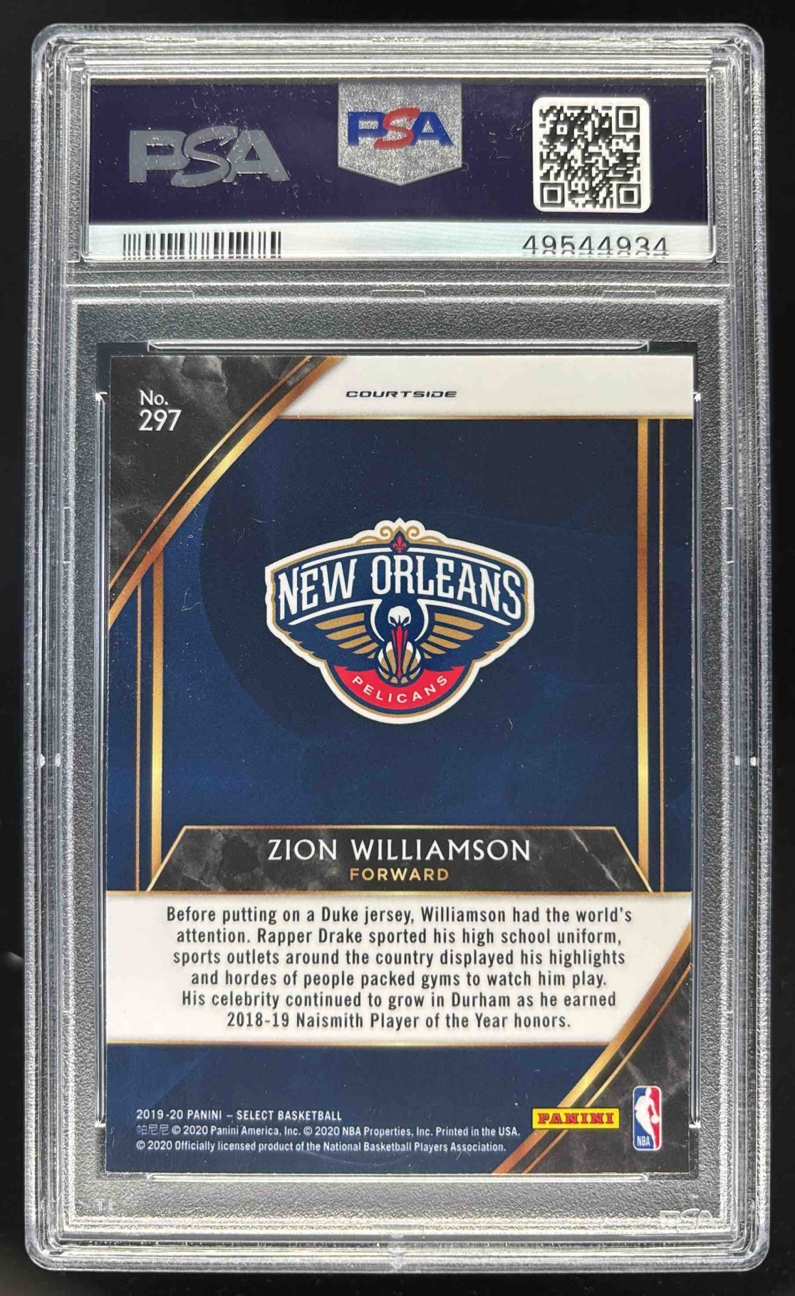 2019-20 Panini Select #297 Zion Williamson RC Courtside PSA 10