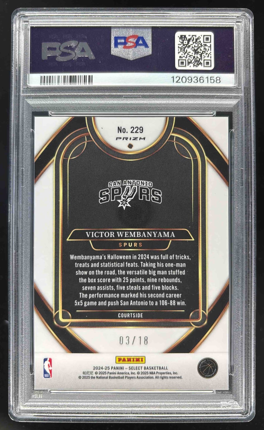 2024 Select Courtside Neon Orange Pulsar Prizm #229 Victor Wembanyama /18 PSA 10