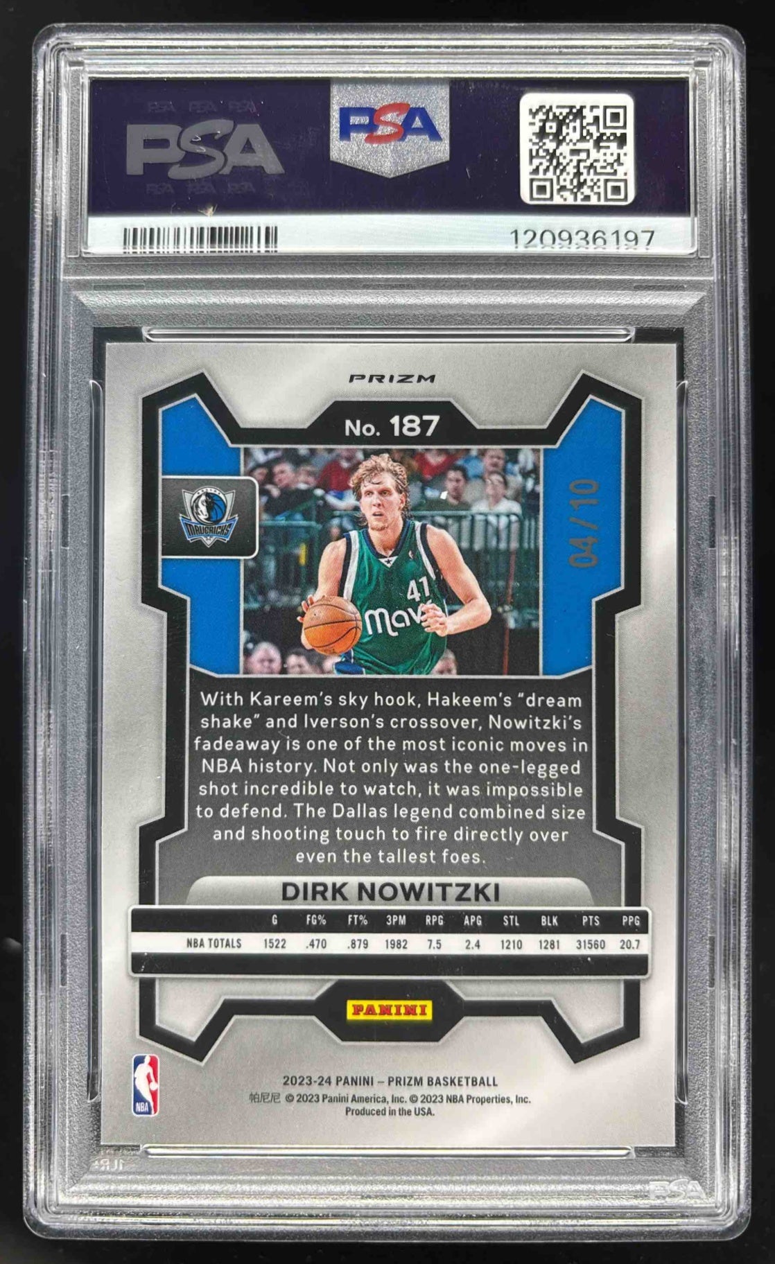 2023-24 Panini Prizm Prizms Gold Wave #187 Dirk Nowitzki /10 PSA 10