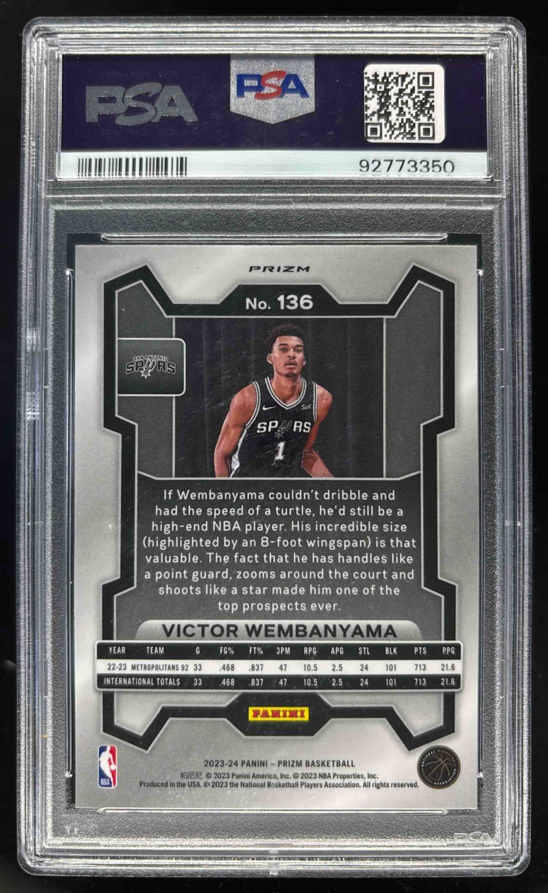 2023-24 Panini Prizm Prizms Hyper #136 Victor Wembanyama RC PSA 10