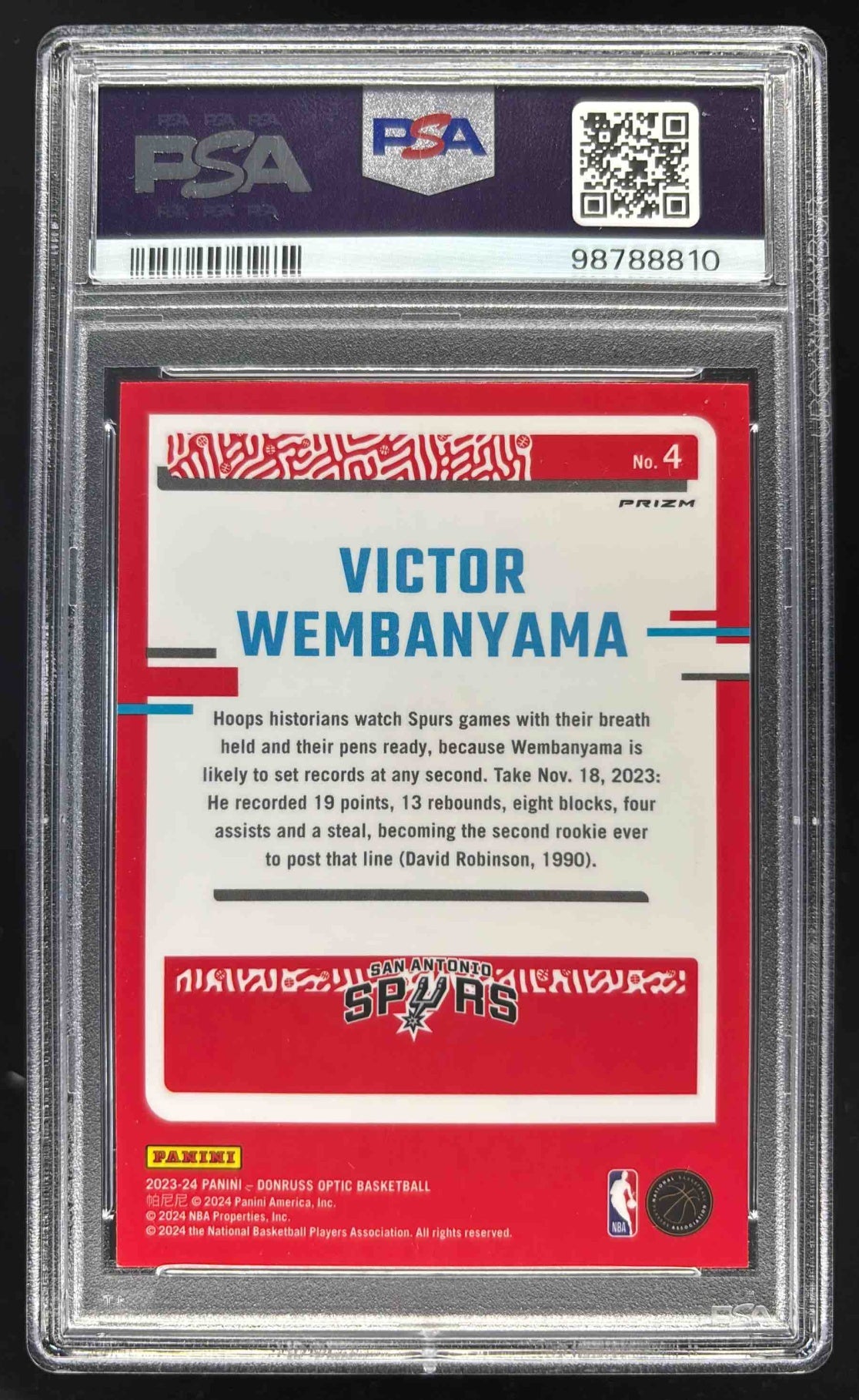 2023-24 Panini Donruss Optic The Rookies Holo #4 Victor Wembanyama RC PSA 10