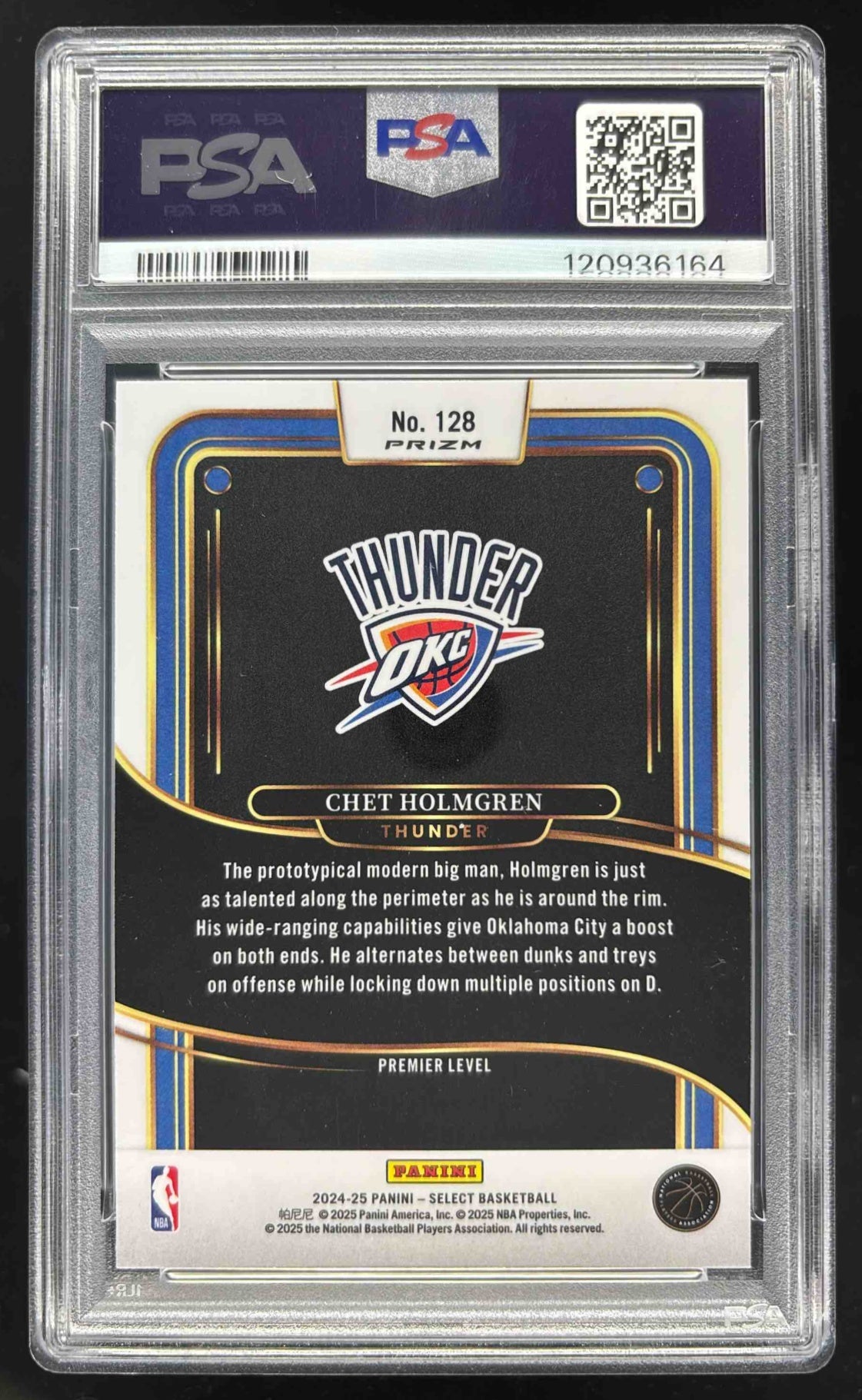 2024-25 Panini Select Premier Zebra Prizm #128 Chet Holmgren PSA 10