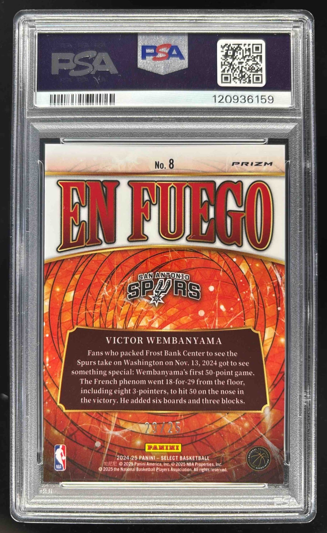 2024-25 Panini Select En Fuego Tie-Dye Prizm #8 Victor Wembanyama /25 PSA 10