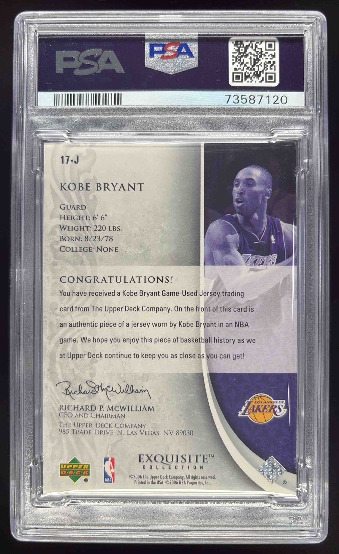 2005-06 Upper Deck Exquisite Collection Jerseys #17-J Kobe Bryant MEM /25 PSA 9