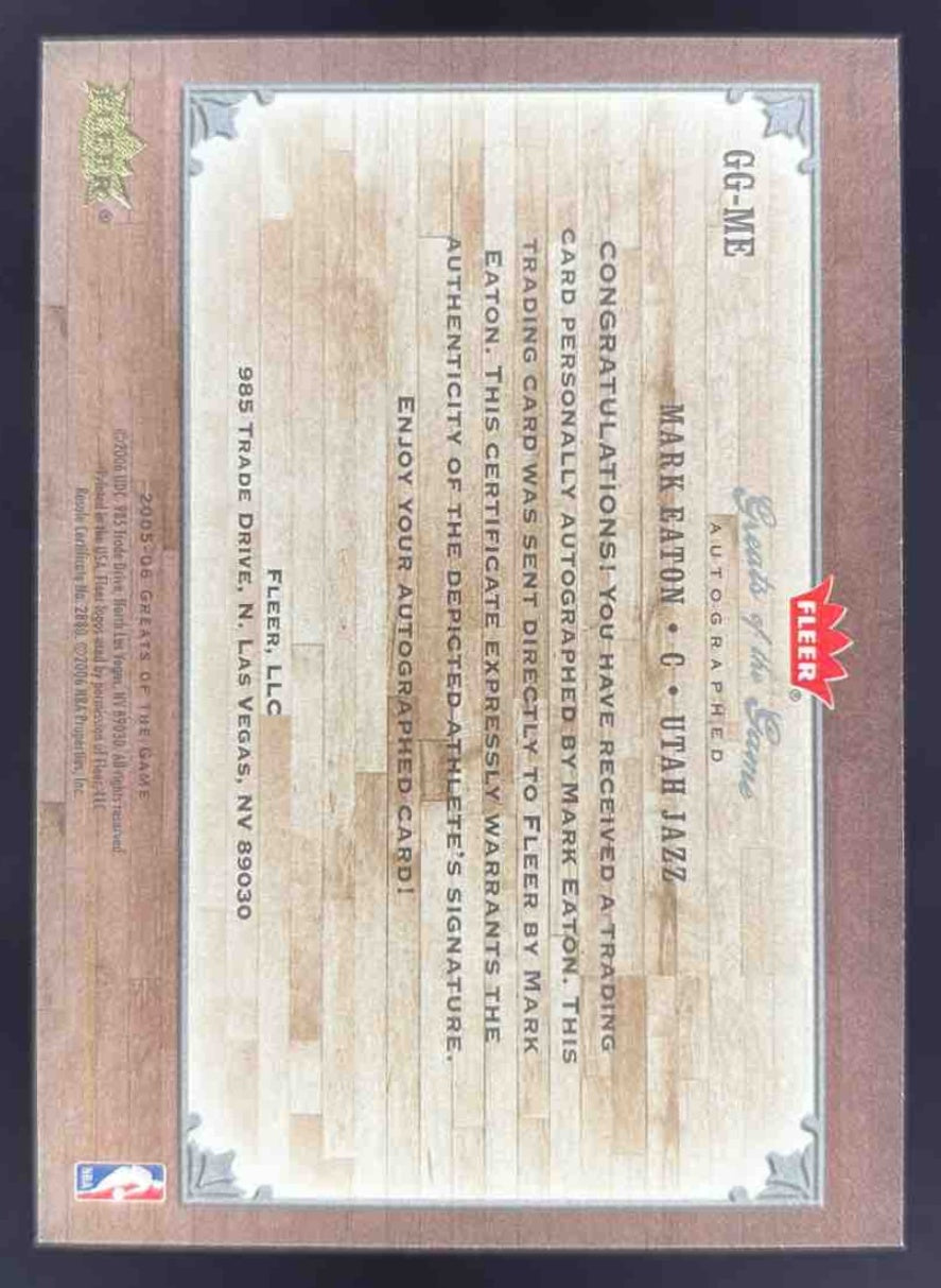 2005-06 Fleer Greats of the Game Autographs #GG-ME Mark Eaton Auto
