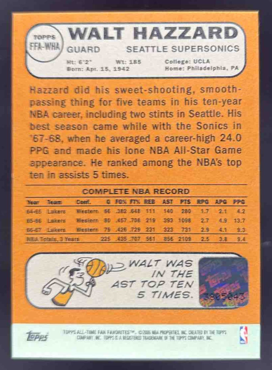 2005 Topps 1952 Style All Time Fan Favorites Autographs #WHA Walt Hazzard Auto