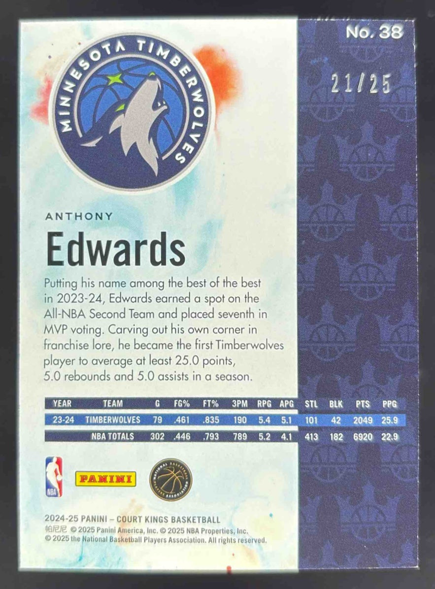 2024-25 Panini Court Kings Sapphire #38 Anthony Edwards /25