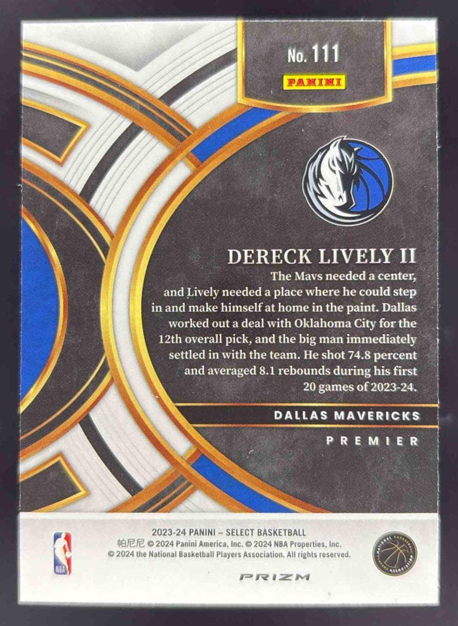 2023-24 Panini Select Tiger Prizms #111 Dereck Lively II RC Premier