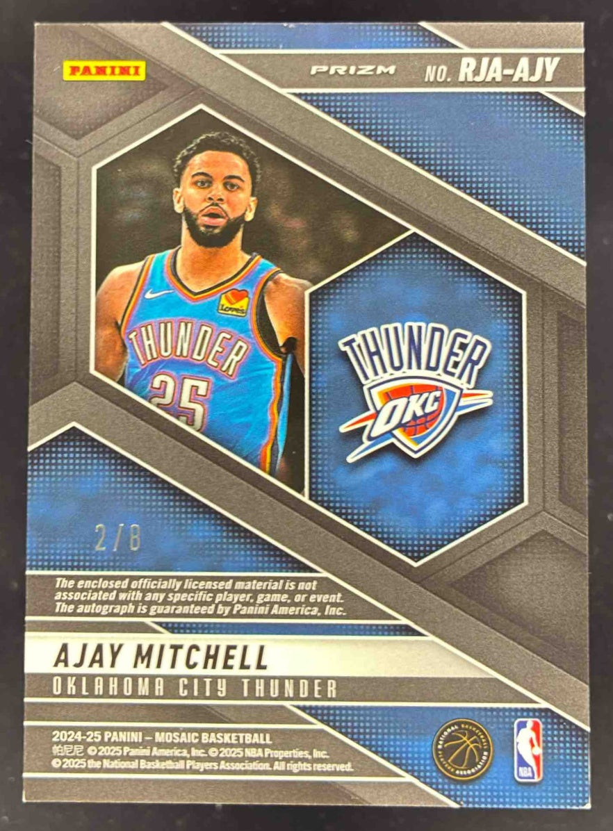 2024-25 Panini Mosaic Rookie Jersey Choice Black Gold Ajay Mitchell Auto /8