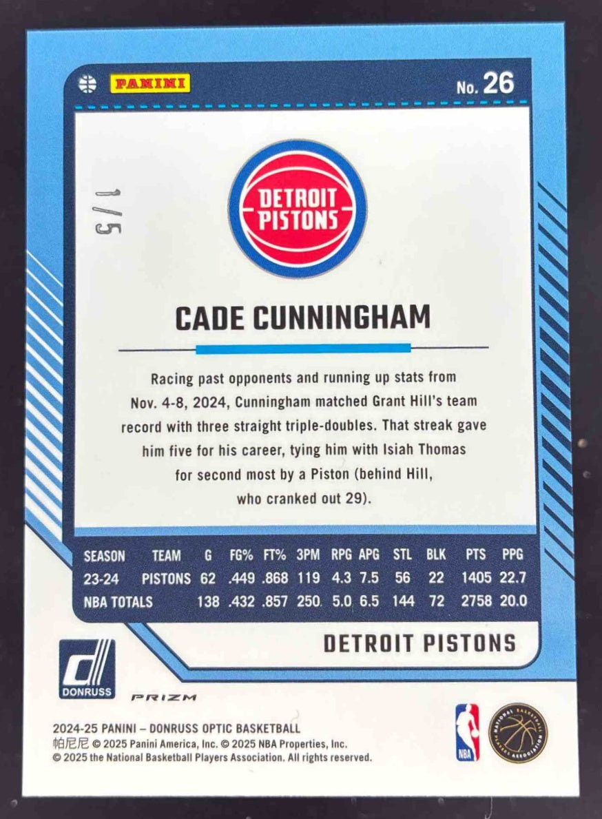 2024-25 Panini Donruss Optic Fast Break Neon Green #26 Cade Cunningham /5