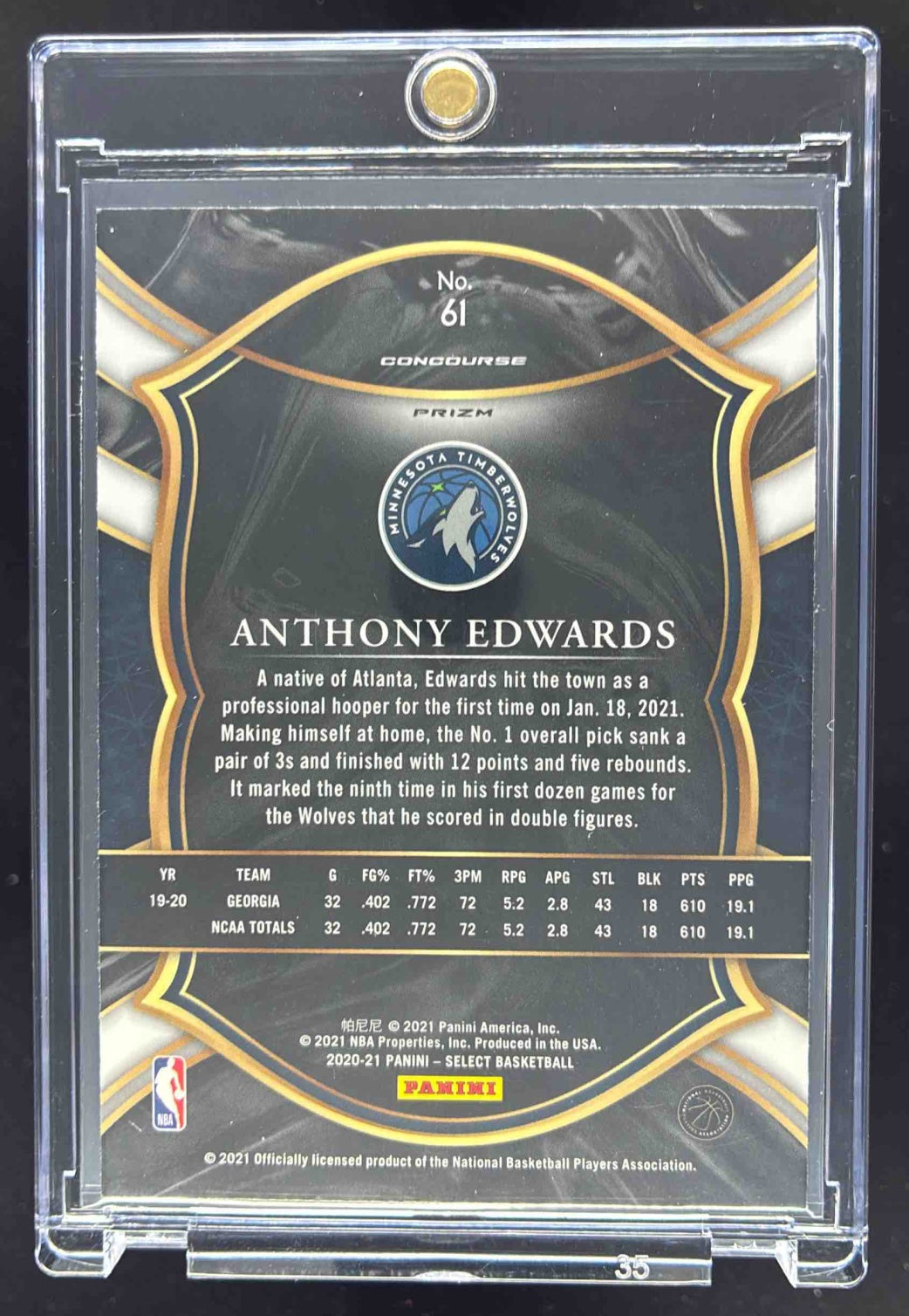 2020-21 Panini Select Zebra Prizm SSP #61 Anthony Edwards RC Concourse