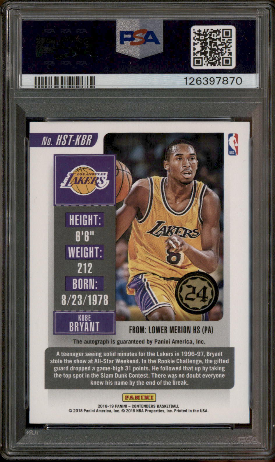 2018 Contenders Historic The Finals Auto Kobe Bryant Autograph /25 PSA Authentic
