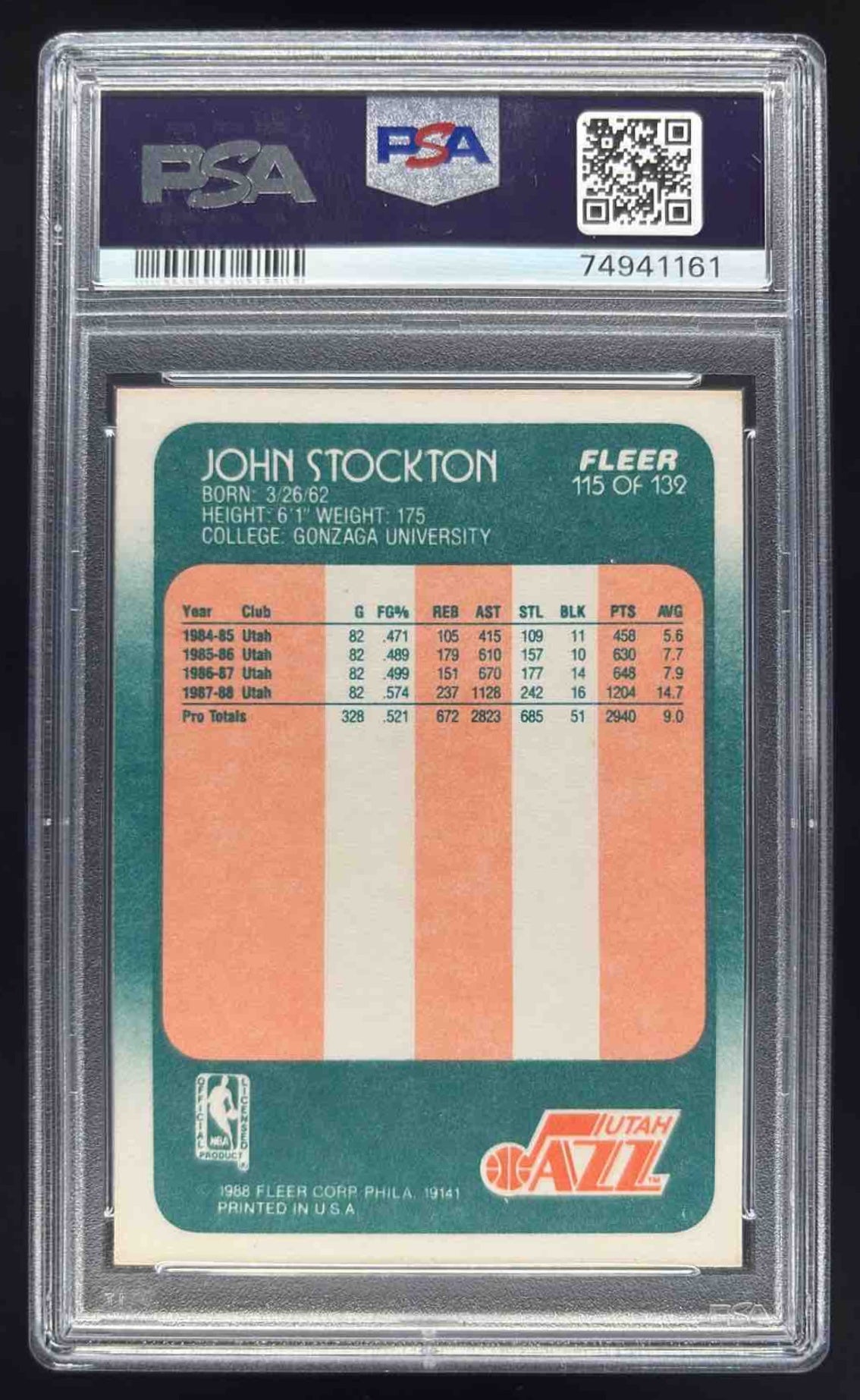 1988-89 Fleer #115 John Stockton RC PSA 8
