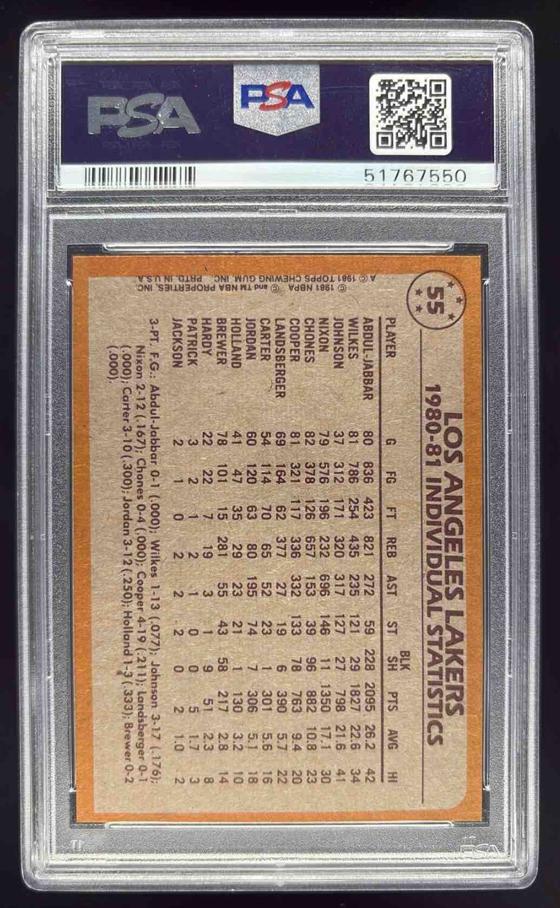 1981-82 Topps #55 Kareem Abdul-Jabbar Norm Nixon PSA 8