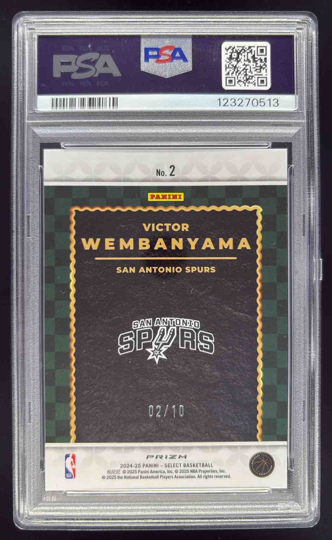 2024-25 Select Score Select Throwback Gold Prizm #2 Victor Wembanyama /10 PSA 9