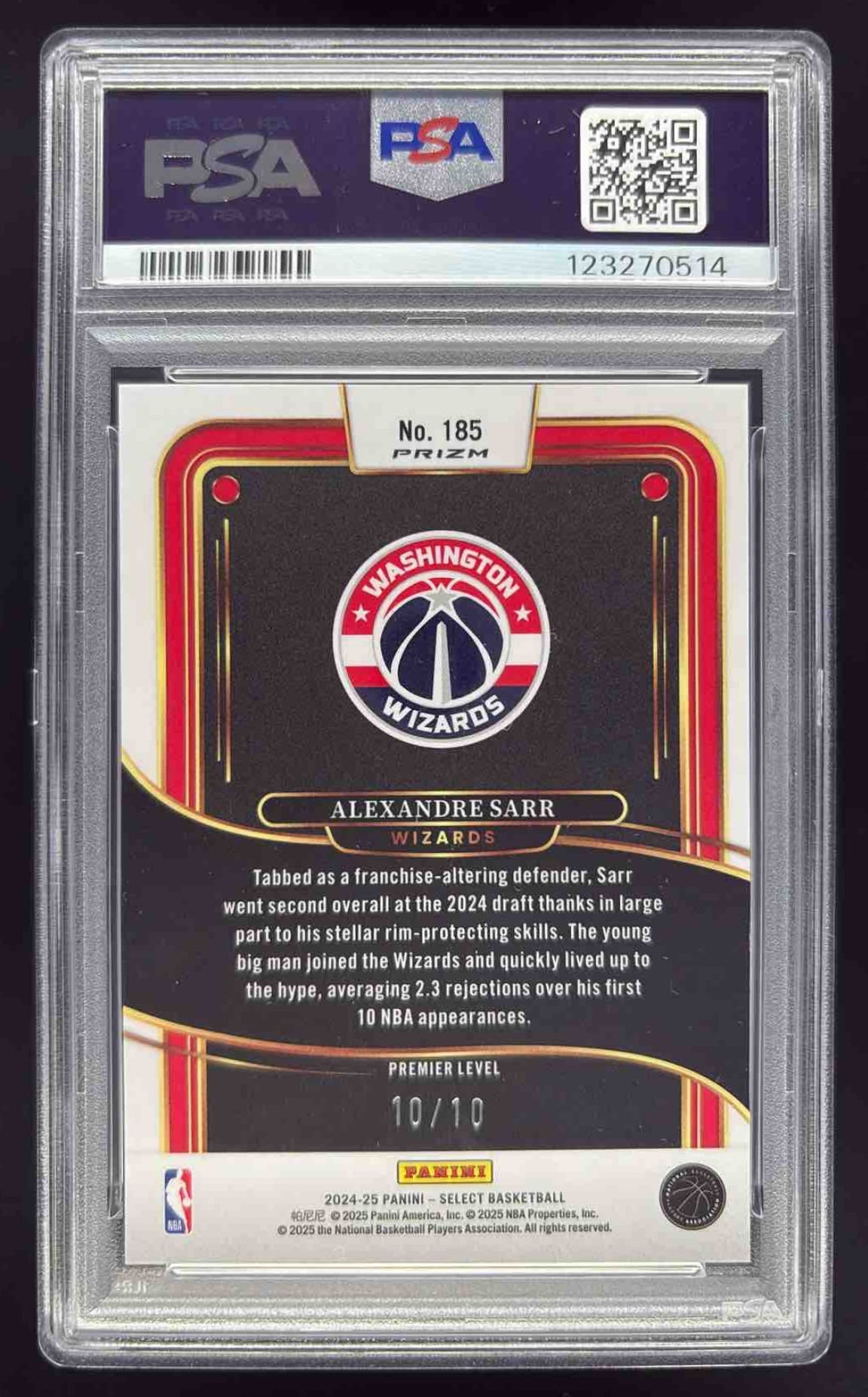 2024-25 Panini Select Premier Gold Prizm #185 Alexandre Sarr RC /10 PSA 9
