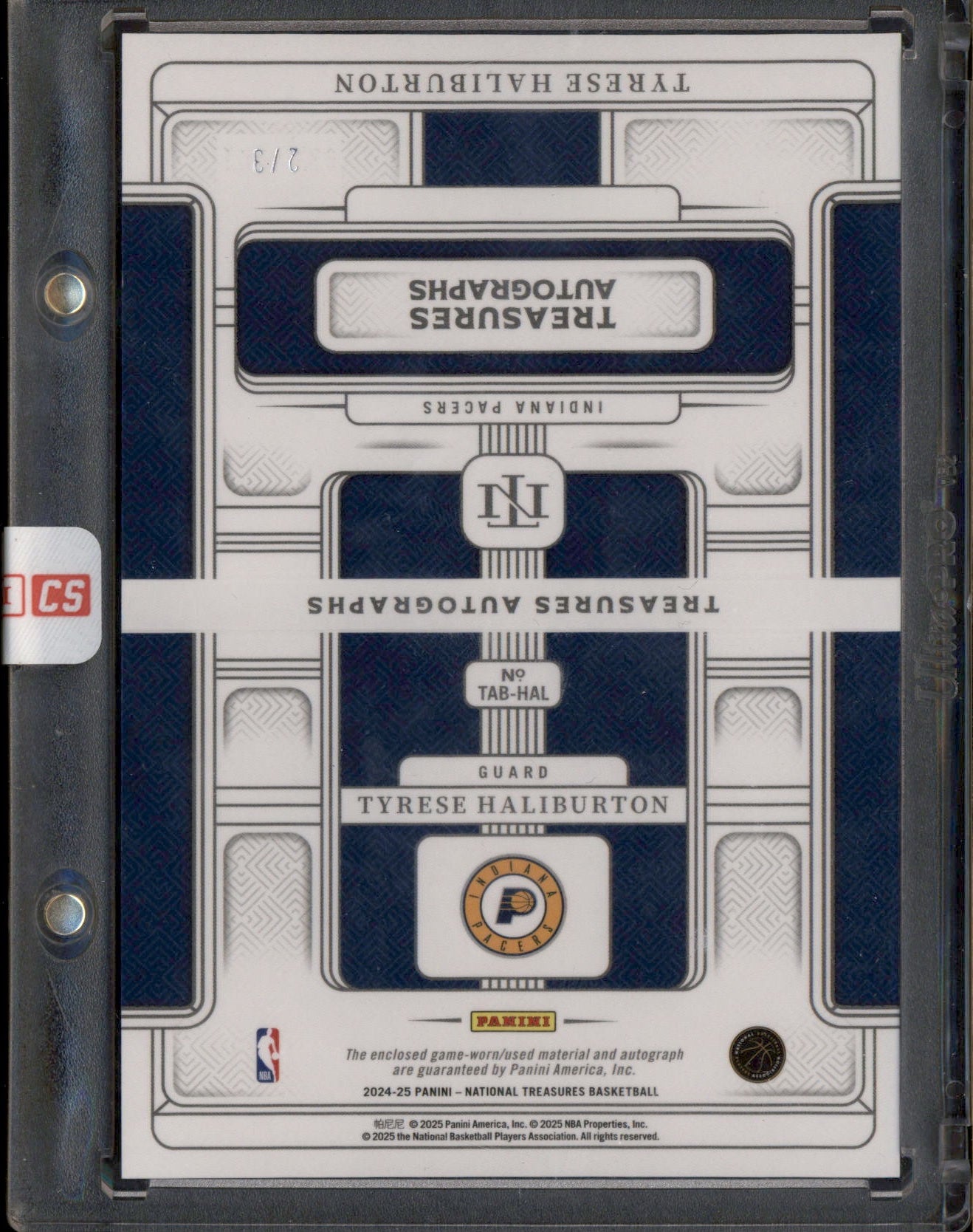 2024-25 Panini National Treasures Treasures Auto Booklet Tyrese Haliburton /3
