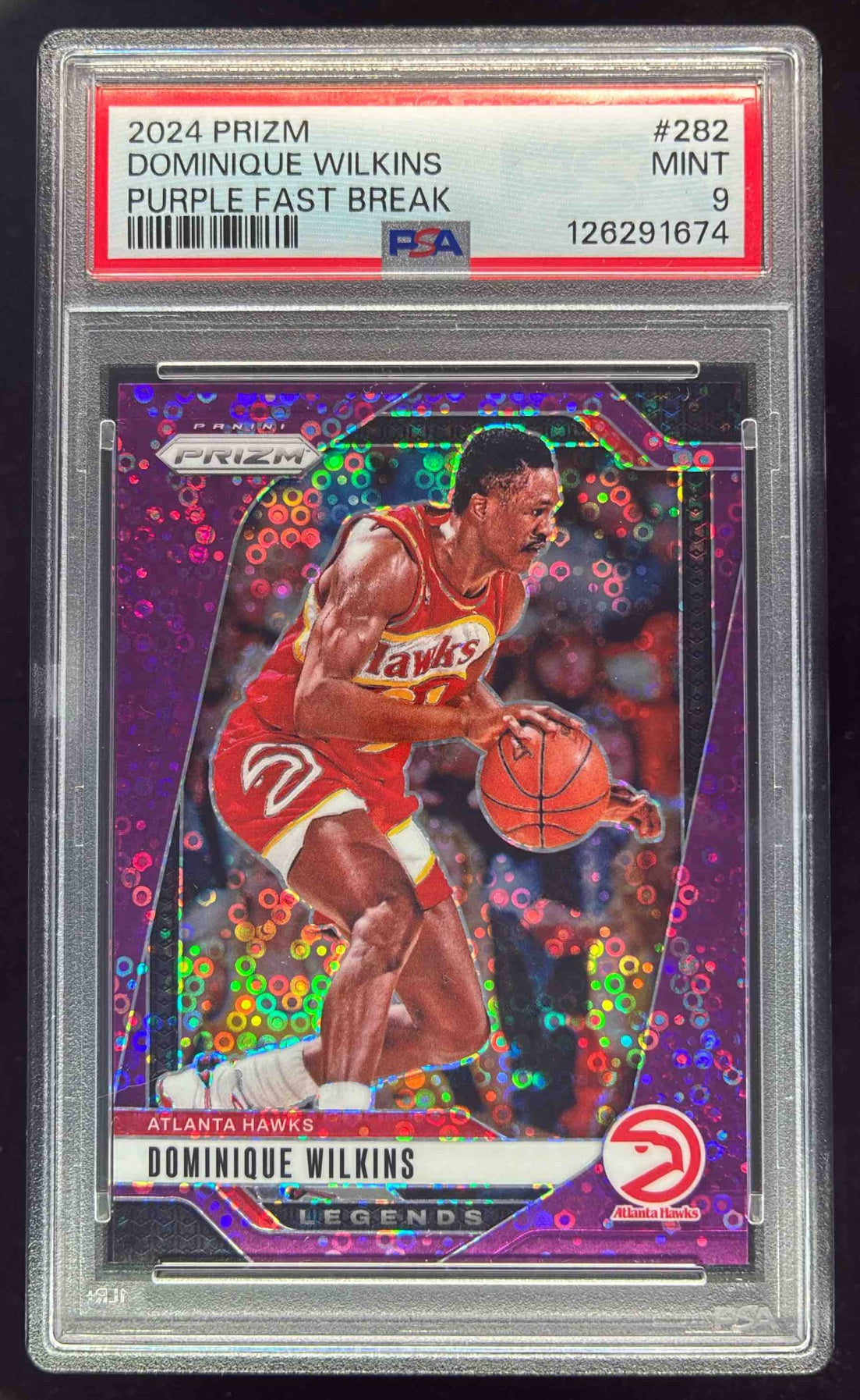 2024-25 Panini Prizm Fast Break Purple Prizm #282 Dominique Wilkins /75 PSA 9