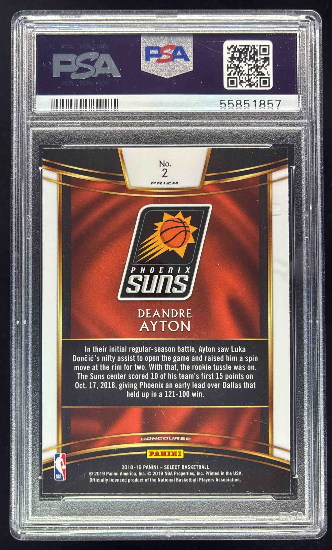 2018-19 Panini Select Tri Color Prizms #2 Deandre Ayton RC Concourse PSA 10