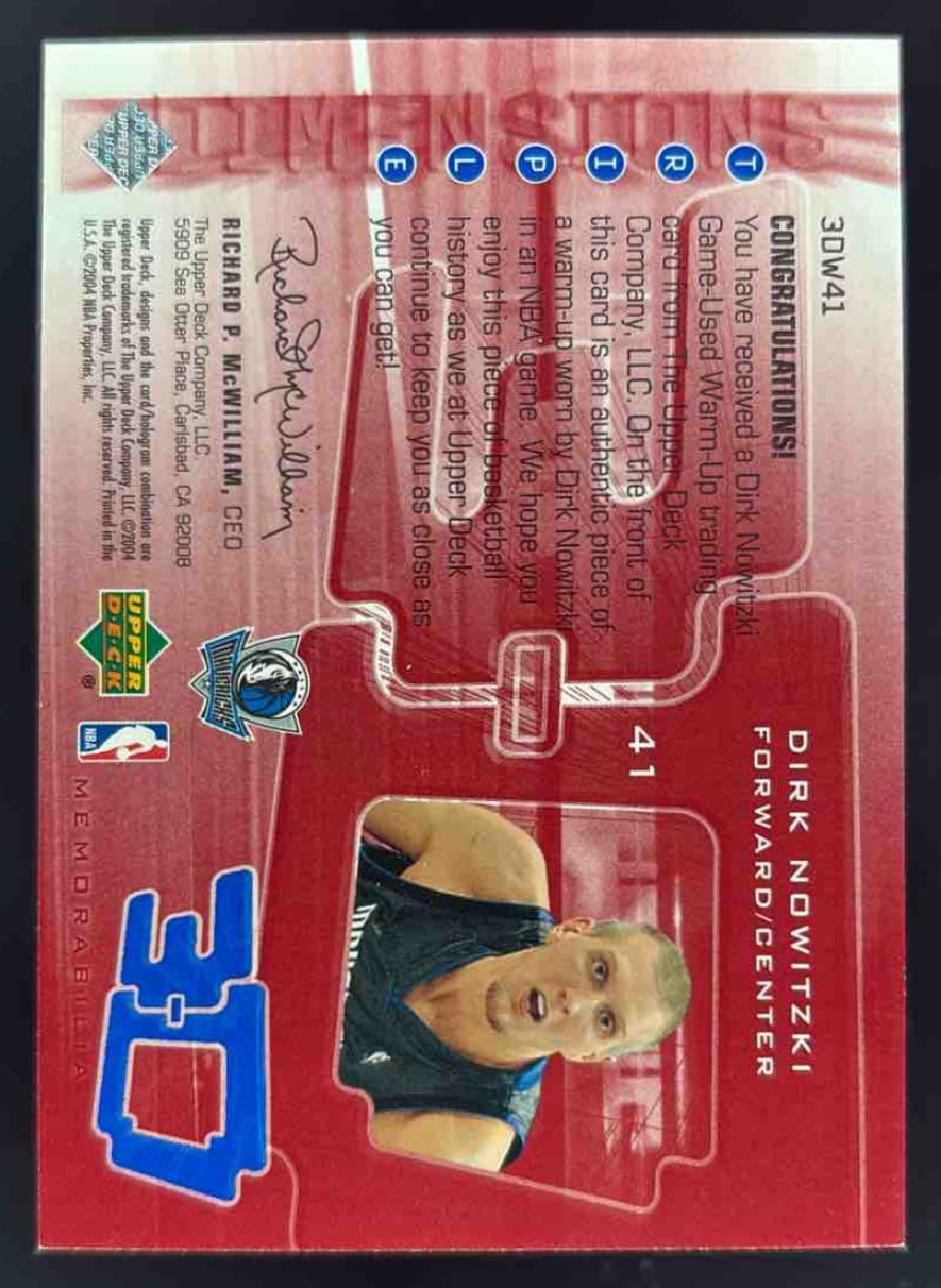 2003-04 Upper Deck Triple Dimensions 3 D Warmups #3DW41 Dirk Nowitzki /999