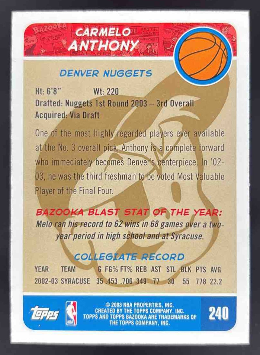 2003 Topps Bazooka Gold #240b Carmelo Anthony RC