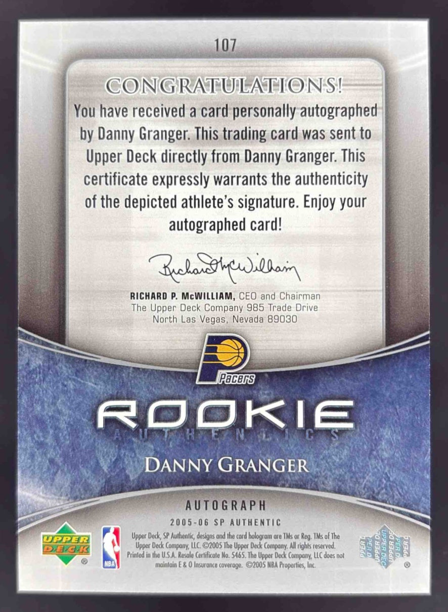 2005-06 SP Authentic #107 Danny Granger Autograph RC Auto /1299