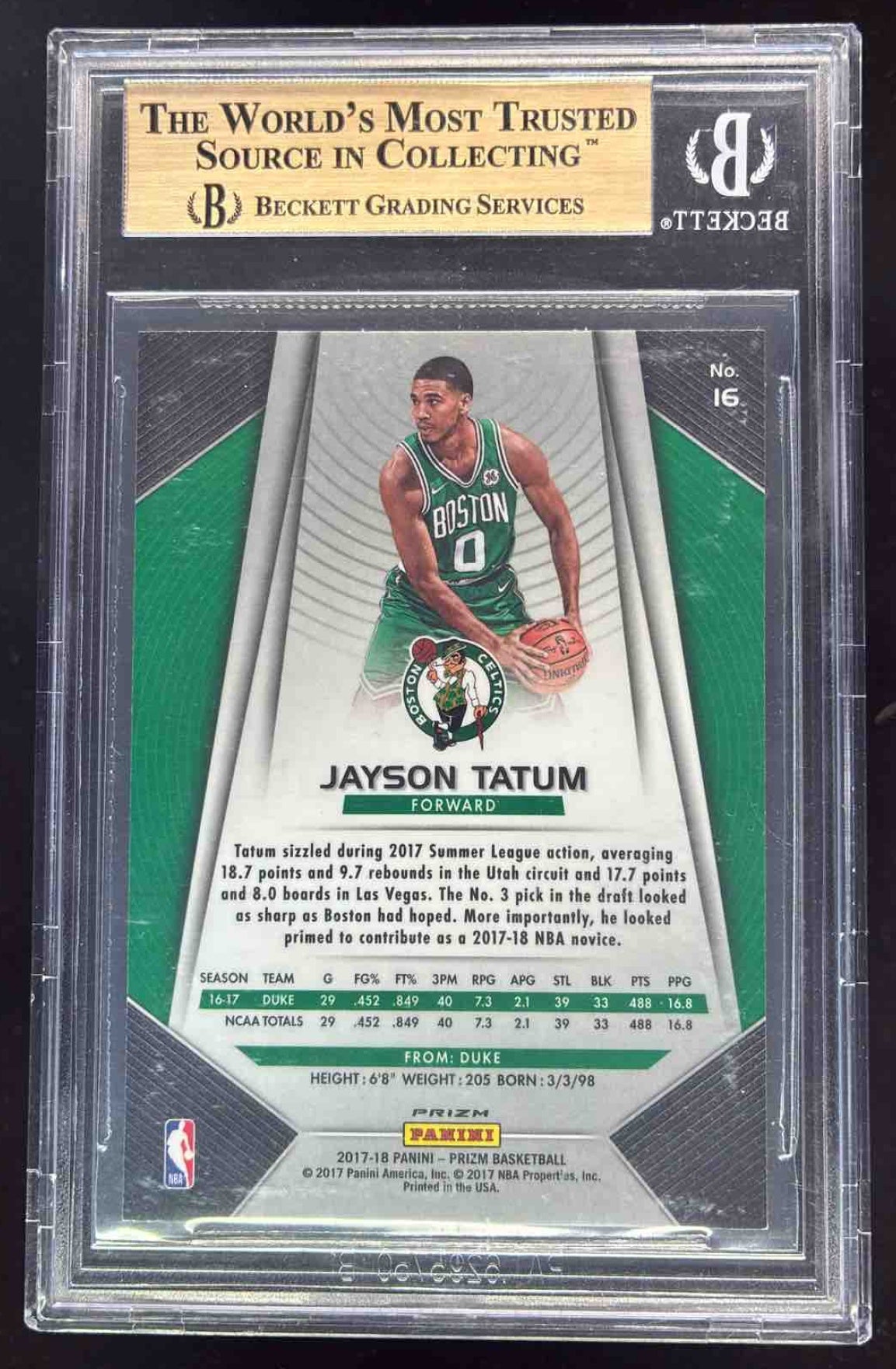 2017-18 Panini Prizm Prizms Silver #16 Jayson Tatum RC BGS 9.5