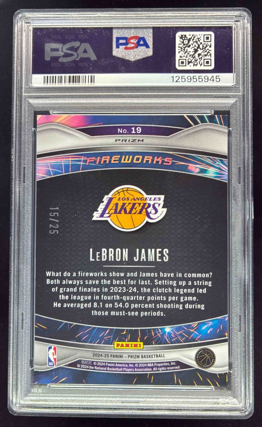 2024-25 Panini Prizm Fireworks Mojo Prizm #19 LeBron James /25 PSA 9