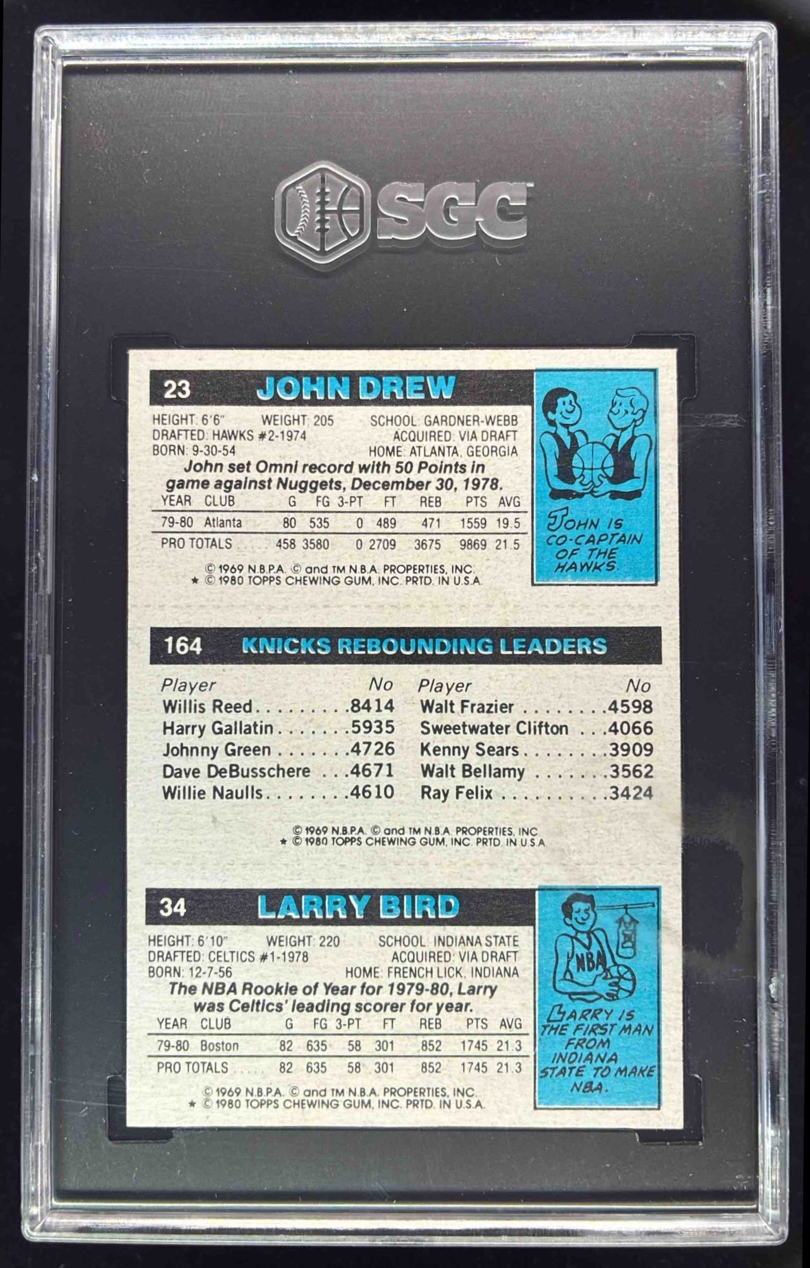 1980 Topps Larry Bird Bill Cartwright John Drew SGC 7.5