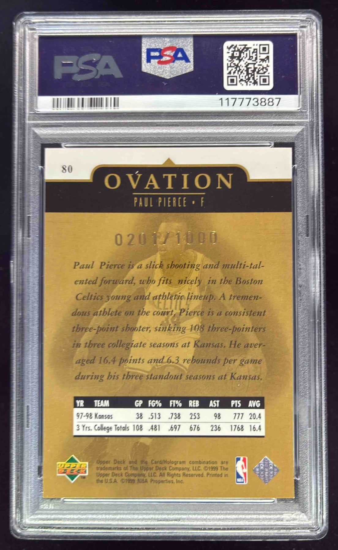 1998-99 Upper Deck Ovation Gold #80 Paul Pierce RC /1000 PSA 8